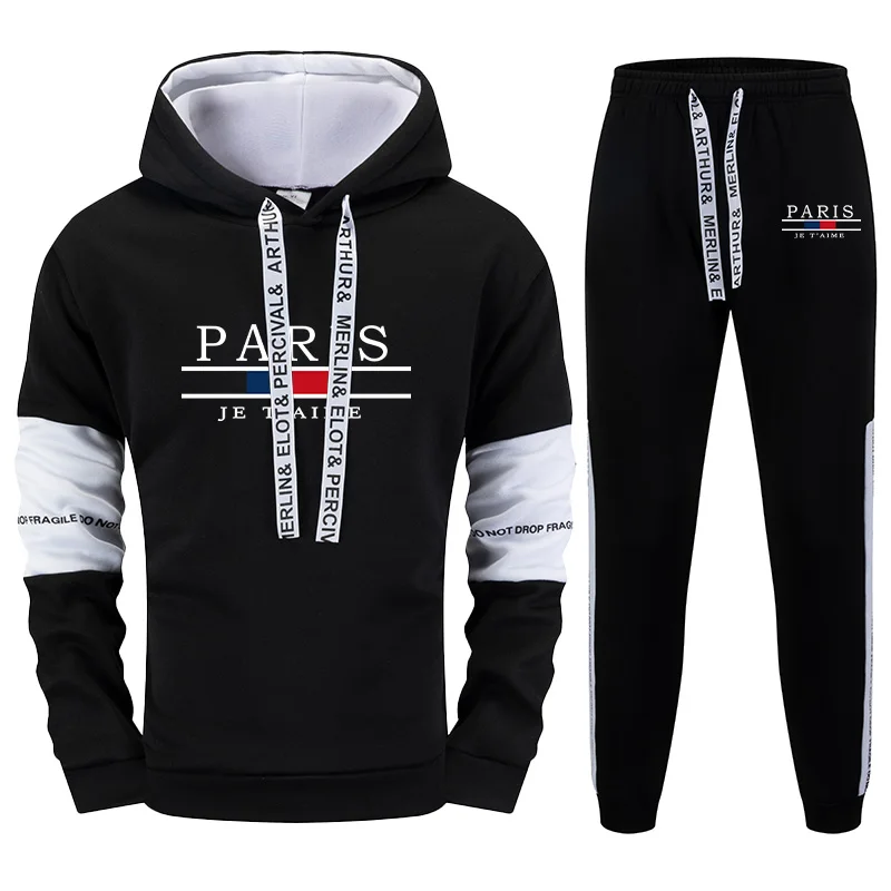 2025 Men's Black & White Hoodie Set - Korean Streetwear Inspired