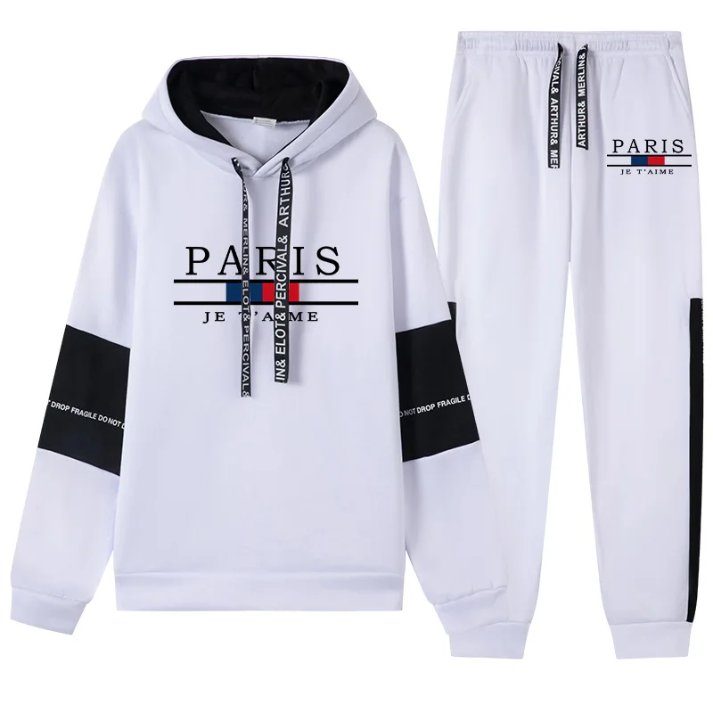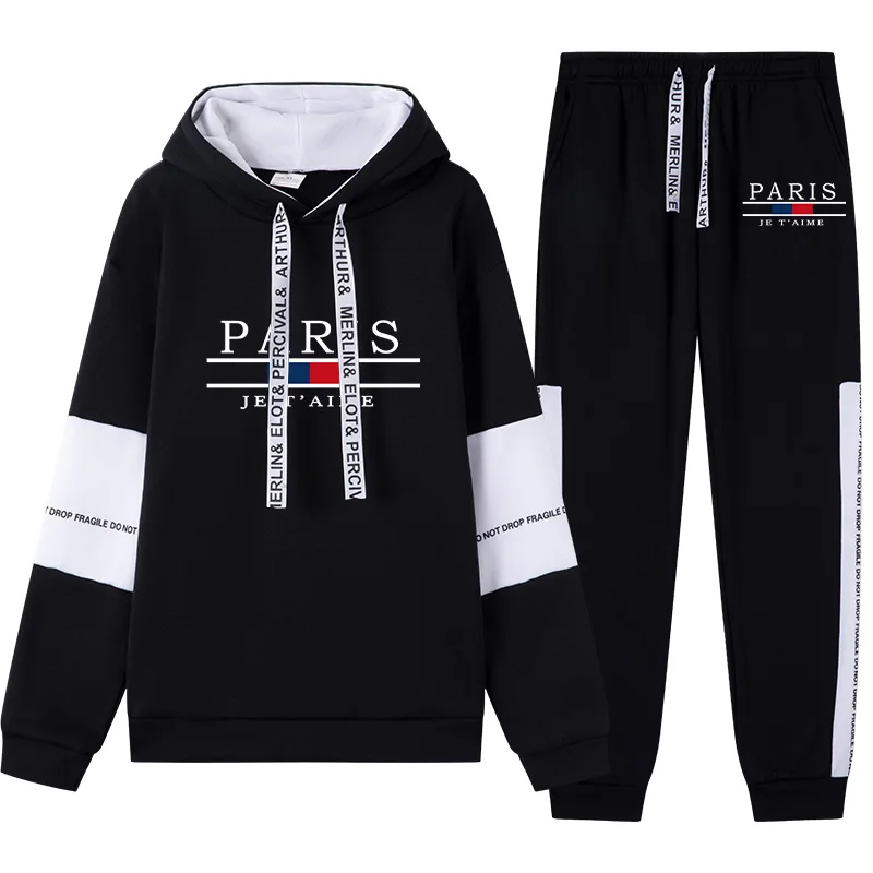 Autumn Winter Men Tracksuit Printing Casual Hooded Sweatshirt+Sweatpants 2 Piece Set Luxury Black White Daily Commuting Clothing