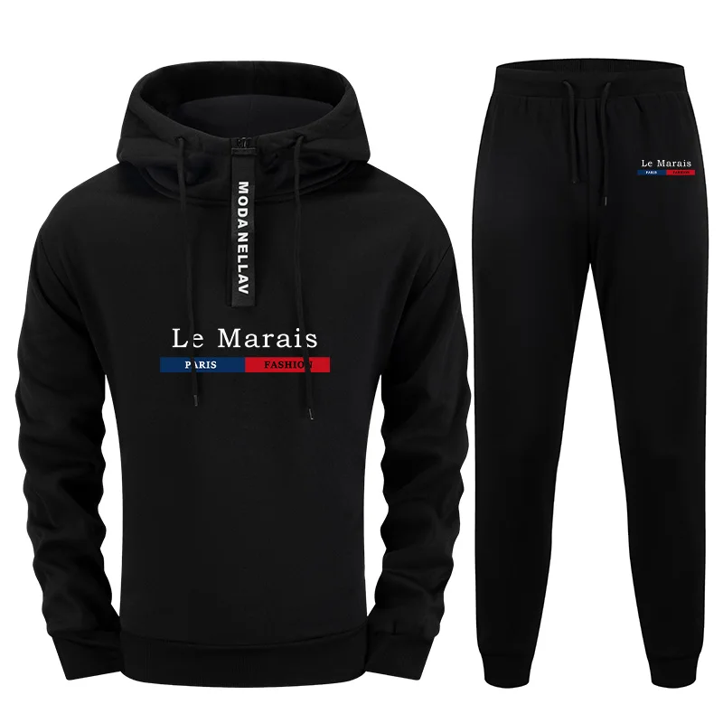 Autumn Winter Paris Fashion Mens 2 Piece Outfit Set 2025 New Half Zip Hoodie and Sweatpants Urban Streetwear Casual Tracksuit