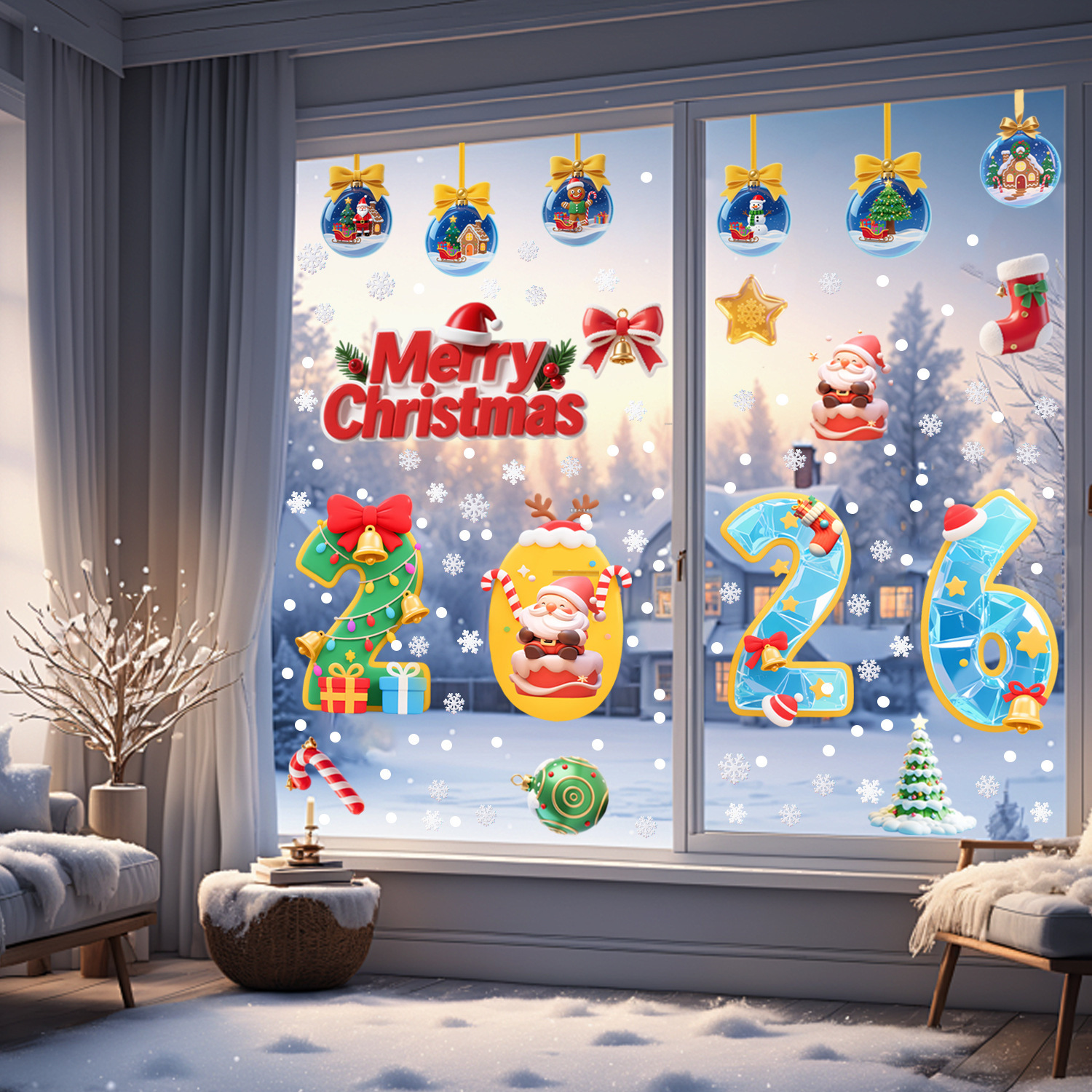 Christmas stickers, creative Christmas tree stickers, static cling stickers, gift bells, snowflakes, glass stickers