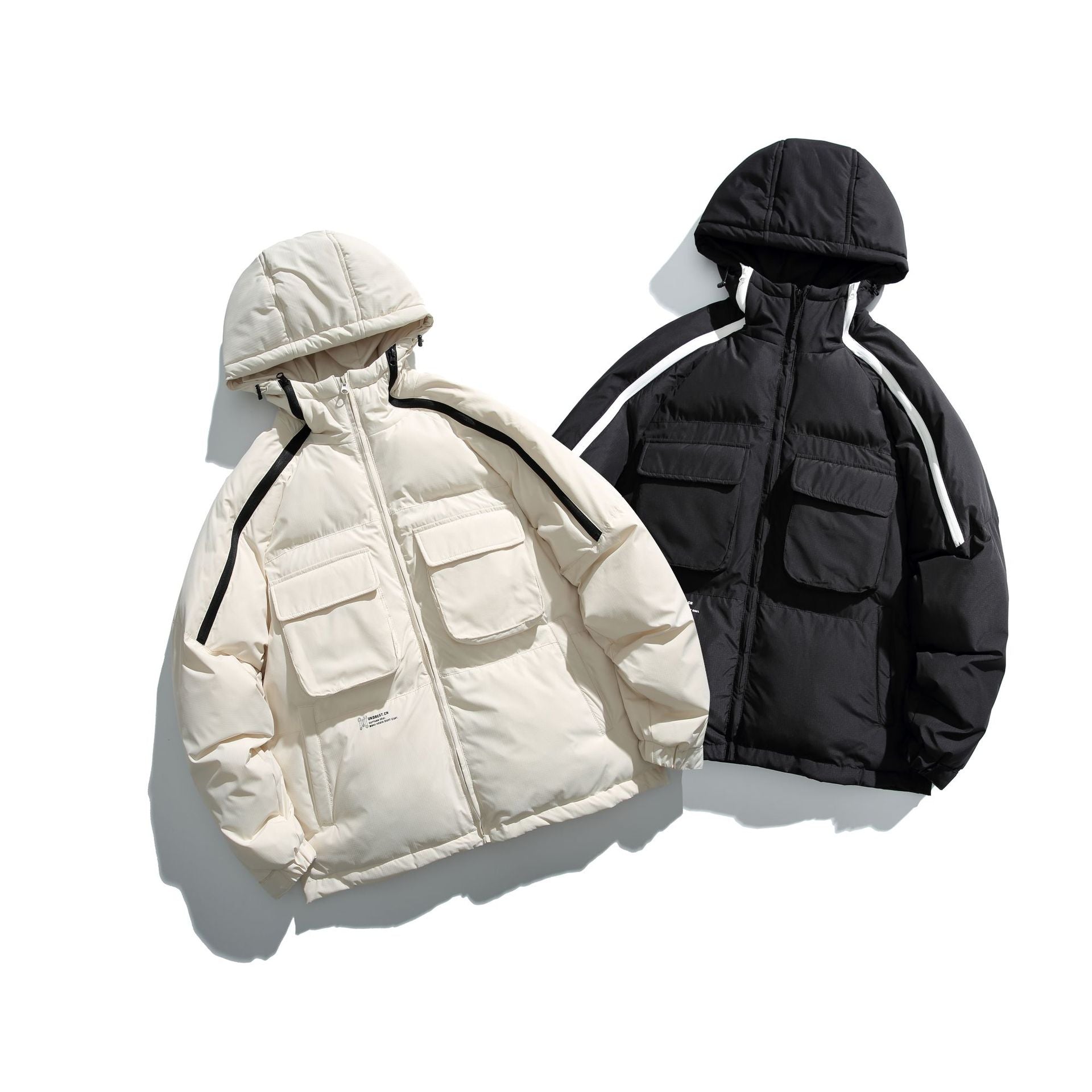 Collar Silhouette College Style Zipper Hooded Loose Fit Cotton Coat