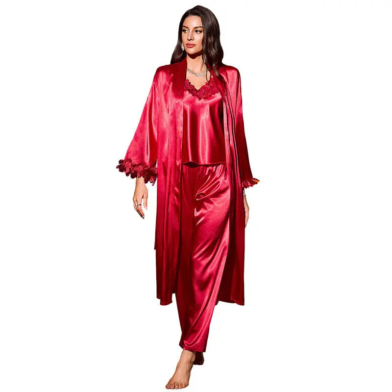 Comfortable Wearable at Home Camisole Shorts Robe Three-Piece Set