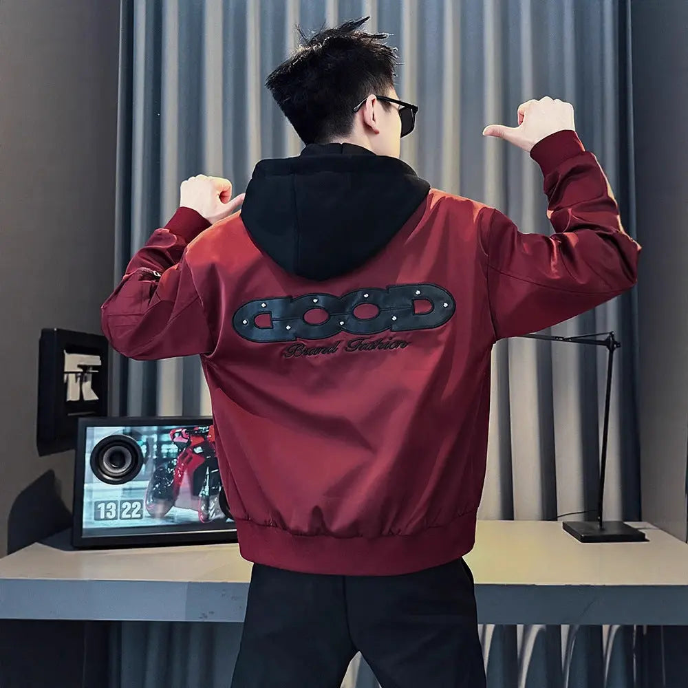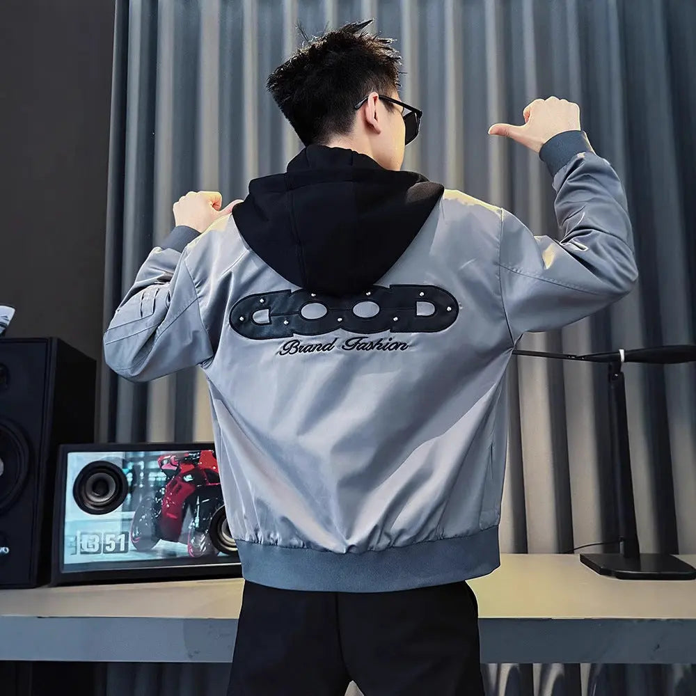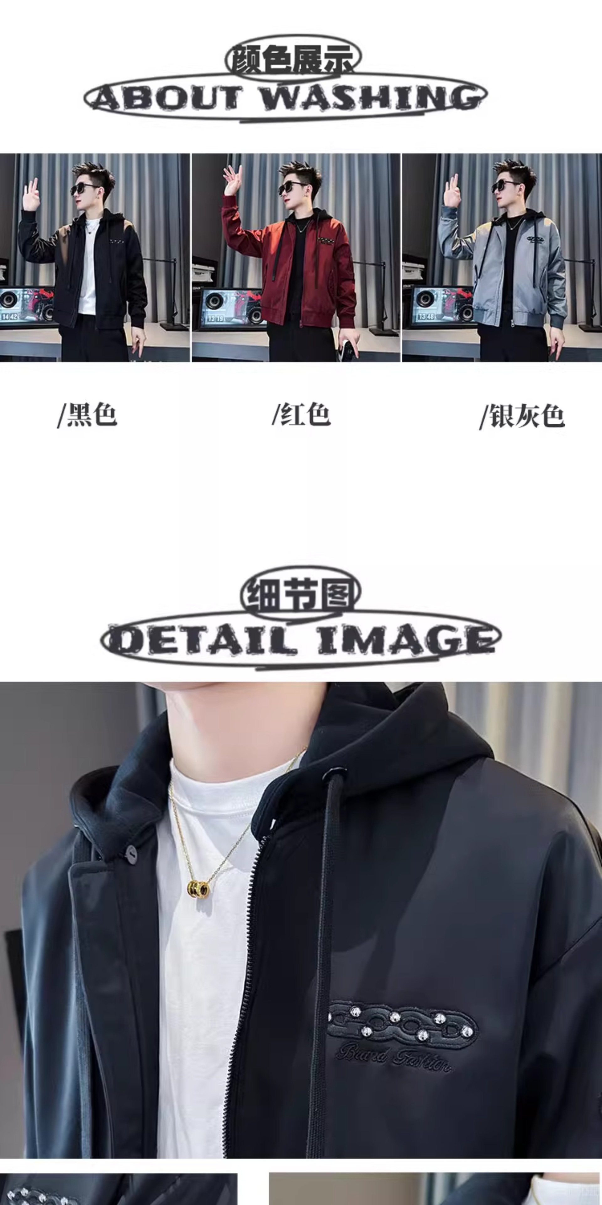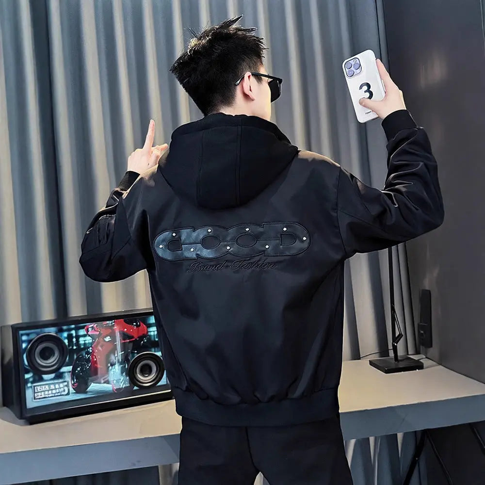 Detachable Hooded Jacket for Men Winter Embroidered Top Men's Short Coat