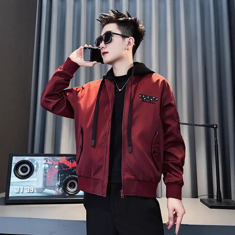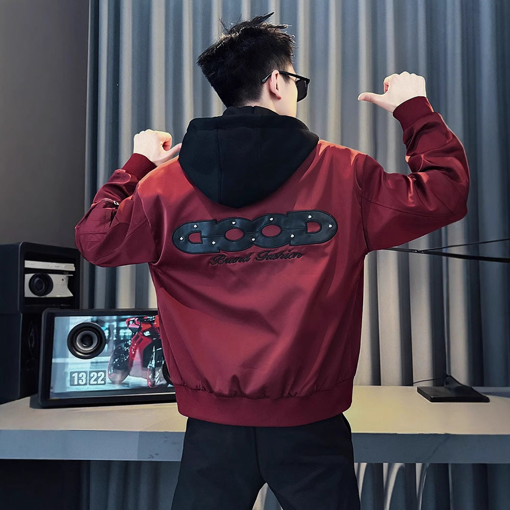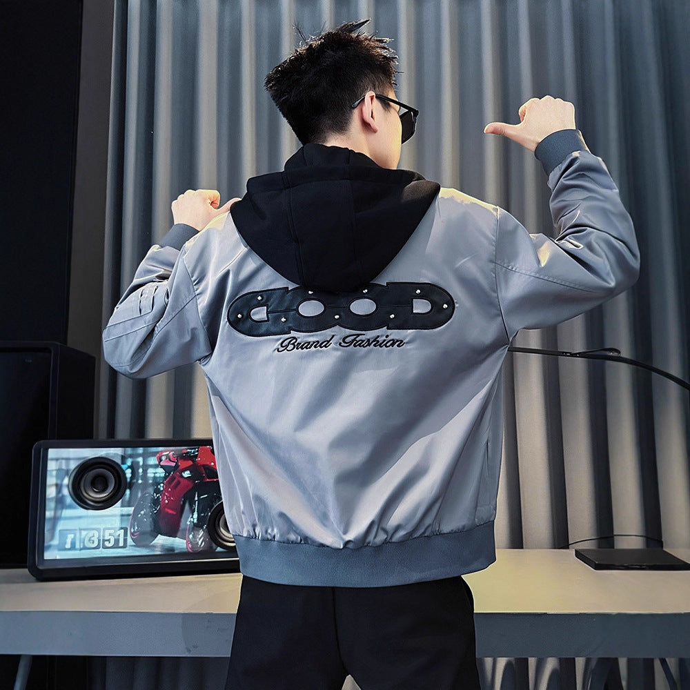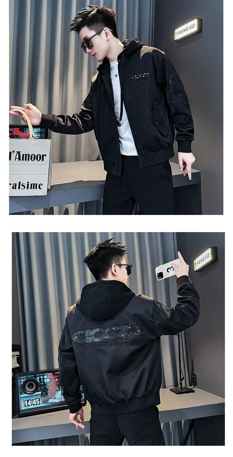 Detachable Hooded Jacket for Men Winter Embroidered Top Men's Short Coat