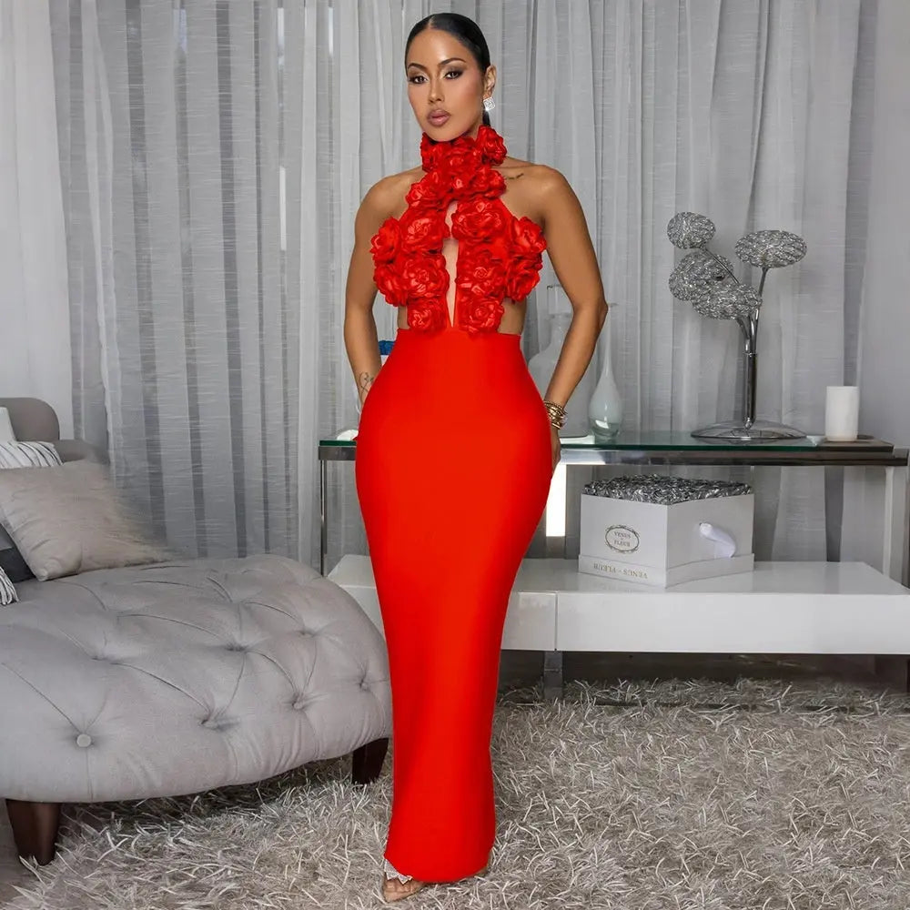 Dress Sexy Halter Large Flower Evening Dress Dress Women