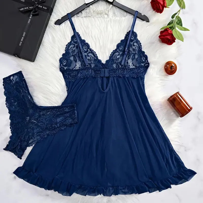 Exotic Apparel Sexy Lingerie Women Crotchless Sleepwear Pajamas Lace Dress Mujer Pornos Costumes Female Underwear Nightgown