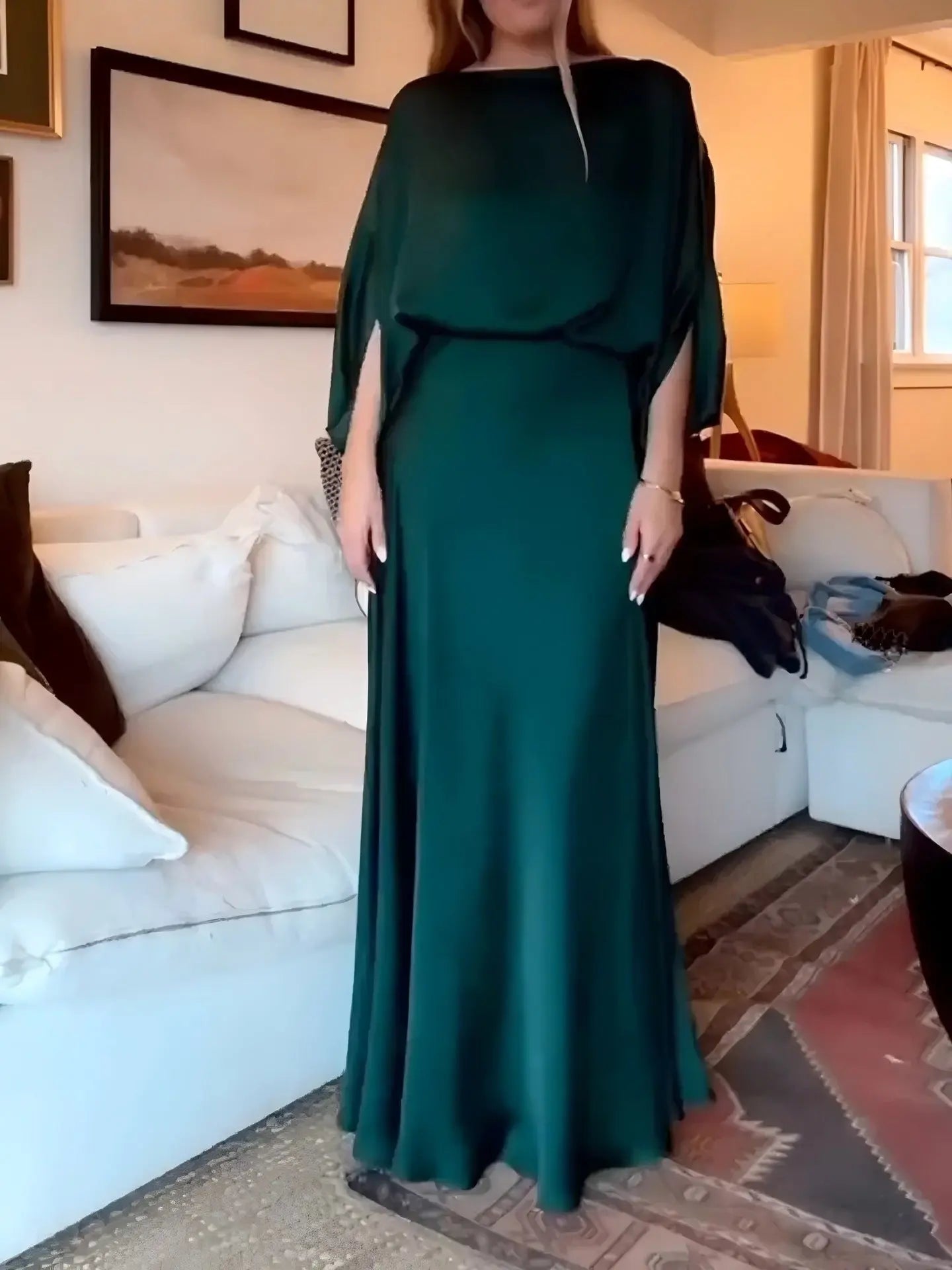 Fashionable Two-Piece Set for Women, Sexy Solid Color Satin Top with Long Elegant Dress