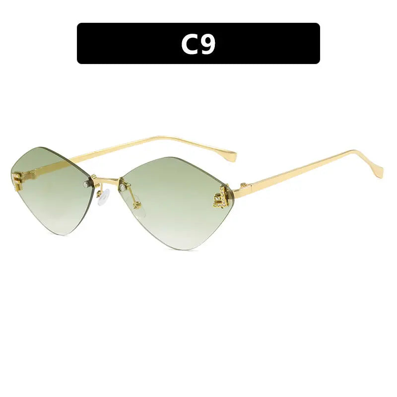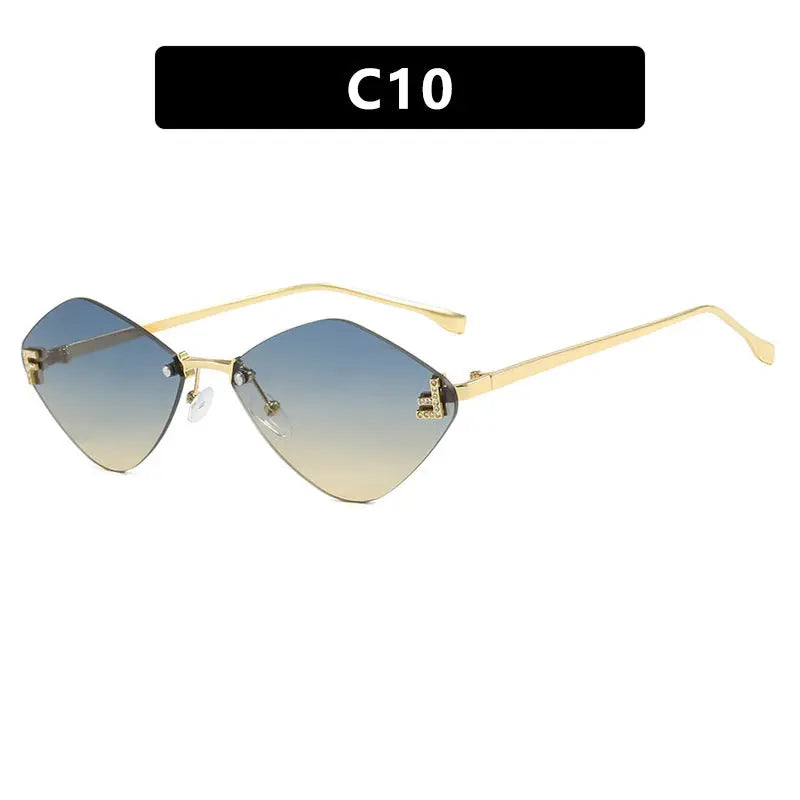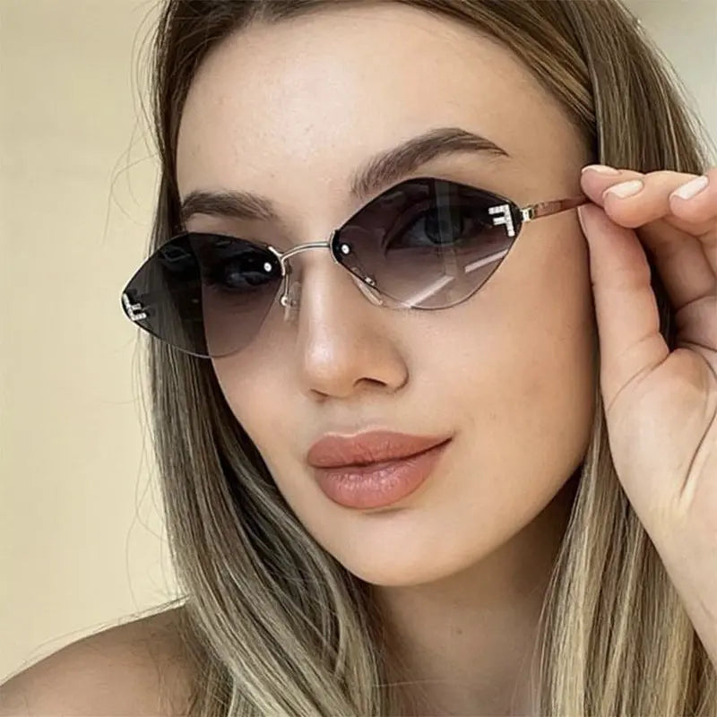 Frameless diamond shaped sunglasses with letter F for women's high-end and elegant sunglasses