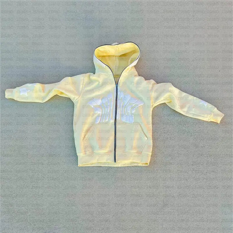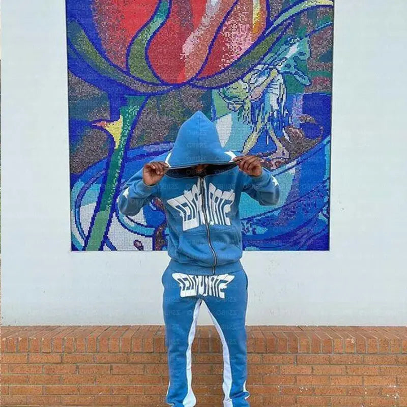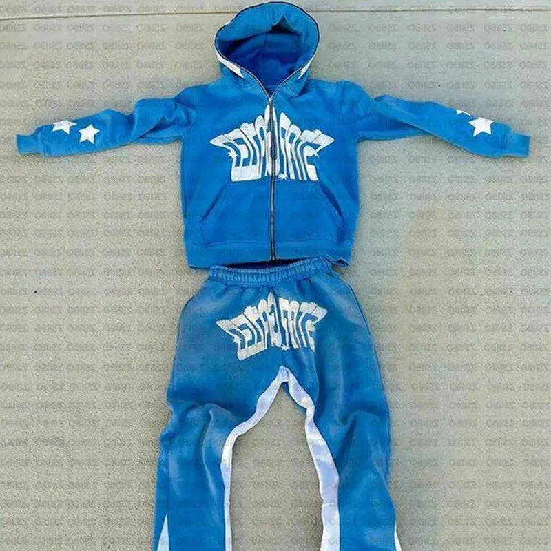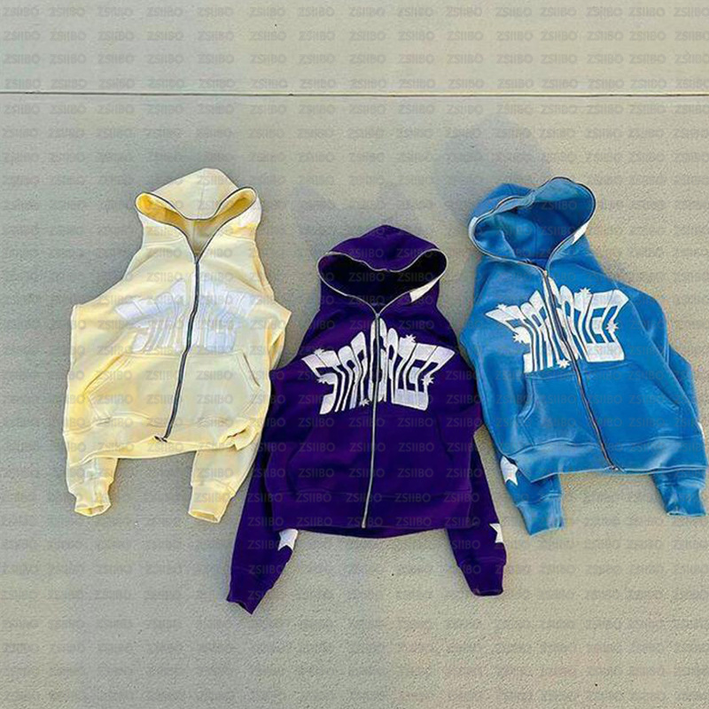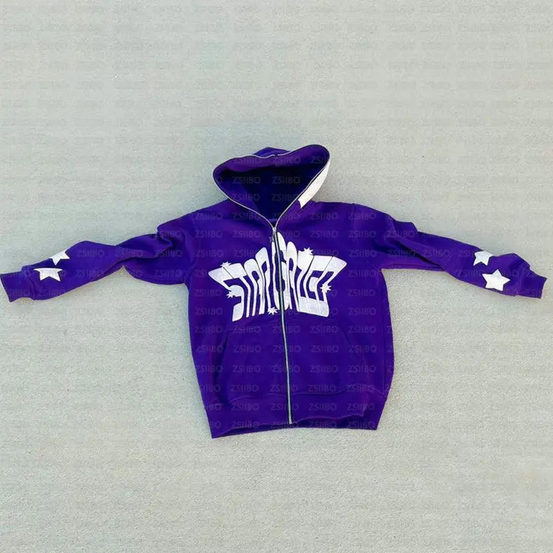 Hooded Sweatshirt with Foaming Letter Hip Hop Print Loose Fit for Women and Men Stars Design Style