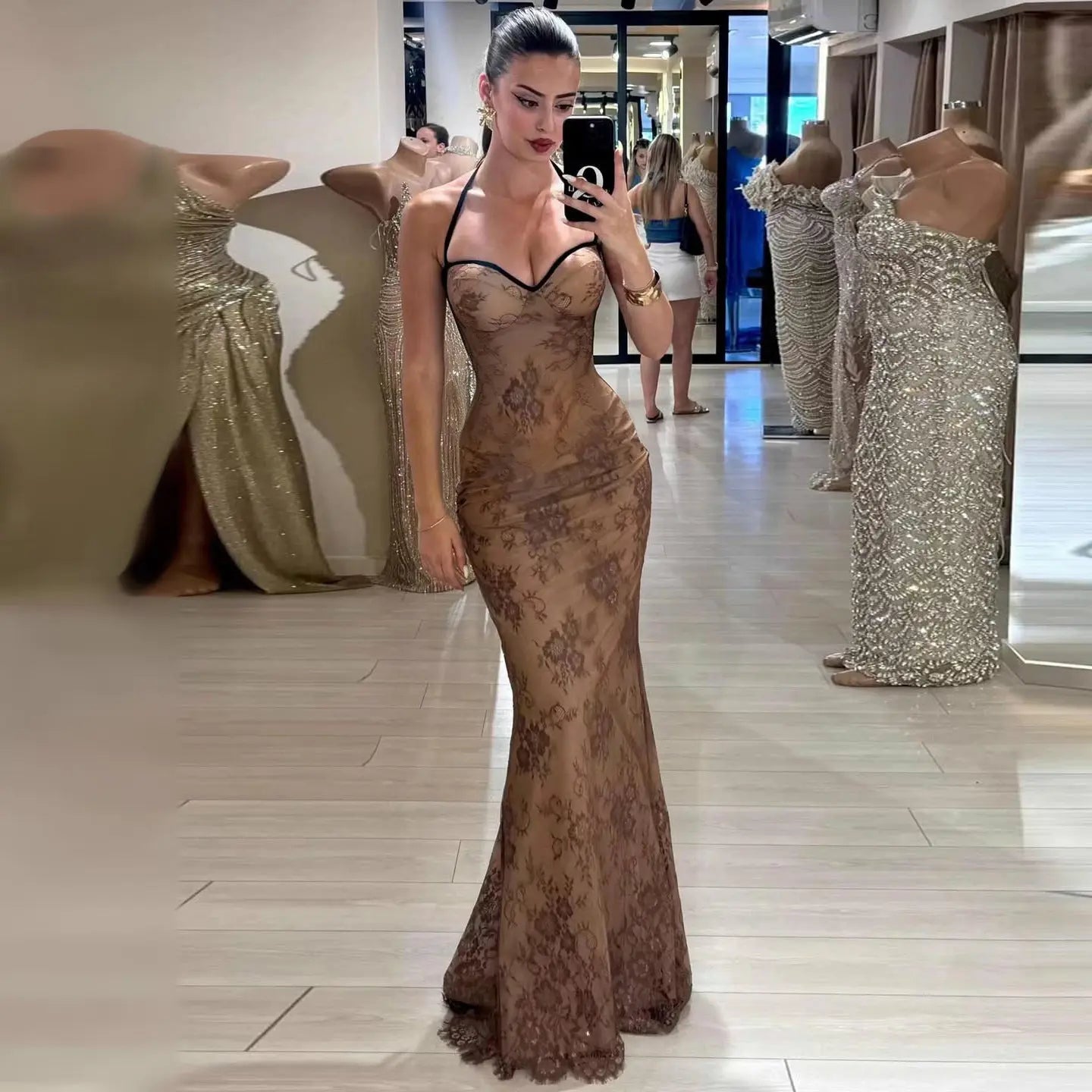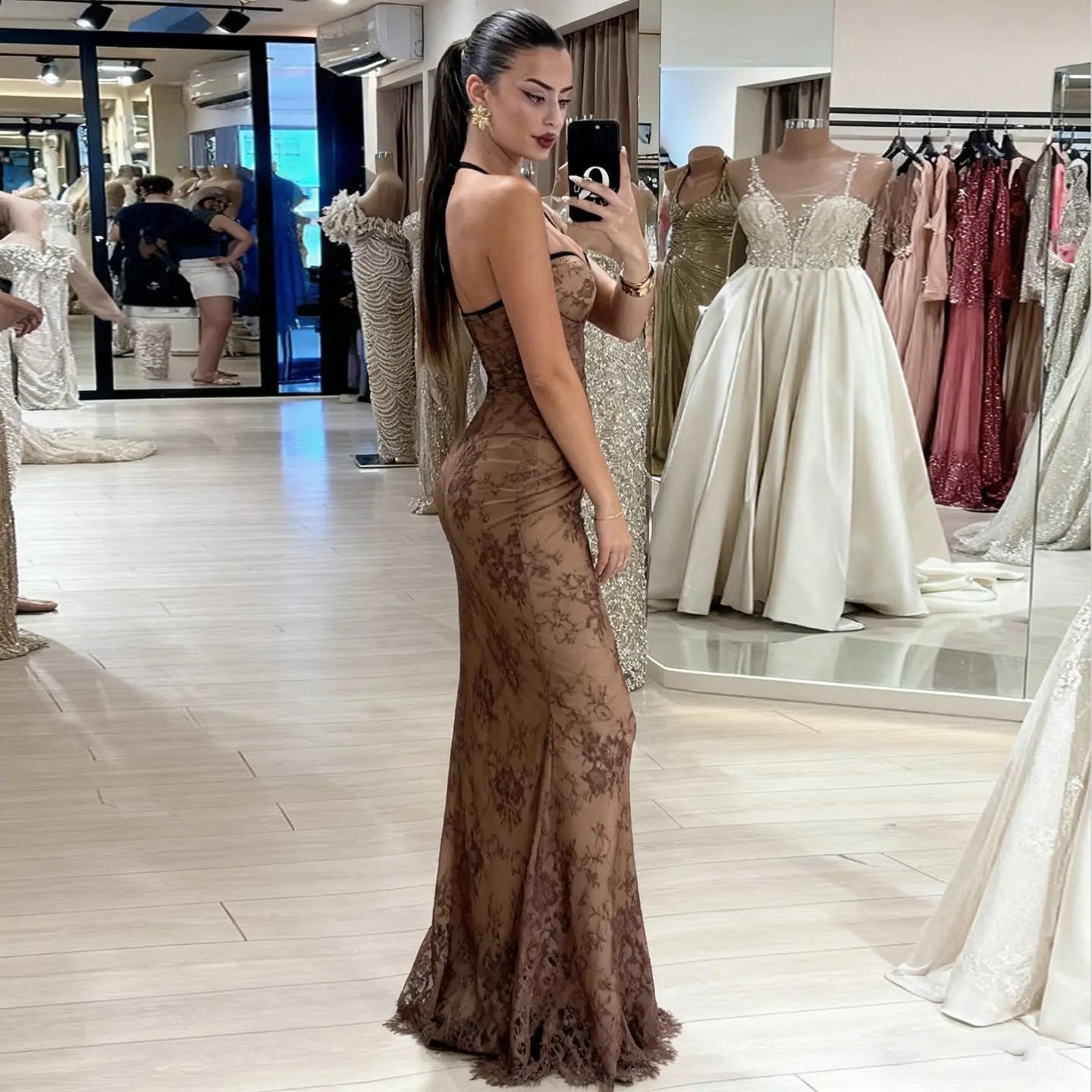 Lace dress crochet spicy girl sexy hanging neck long skirt