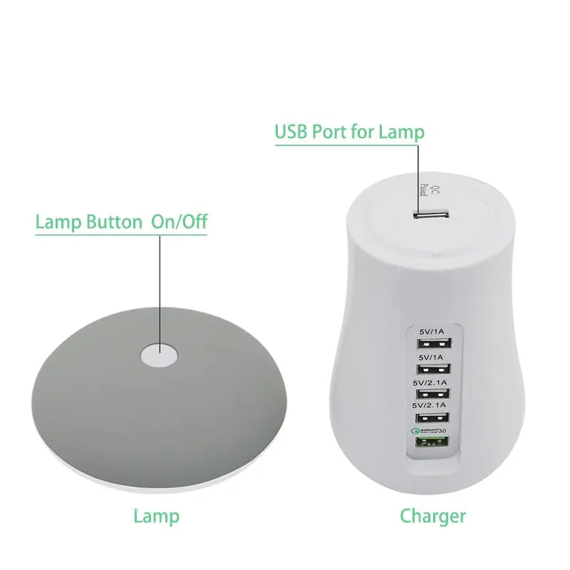 Leebote Multiple USB Phone Charger Mushroom Night Lamp Charging Station Dock QC 3.0 Quick Charger for Mobile Phone and Tablet