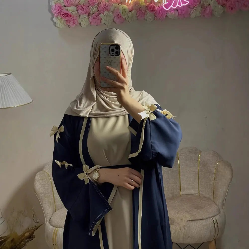 Loriya Arabic Women's Butterfly Knot Abaya Loose Dress