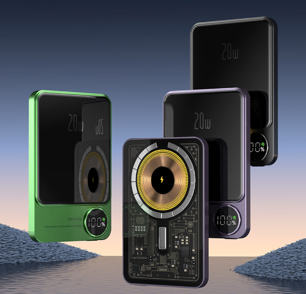 Magnetic charging treasure wireless fast charging industrial style portable metal power bank ultra thin mini