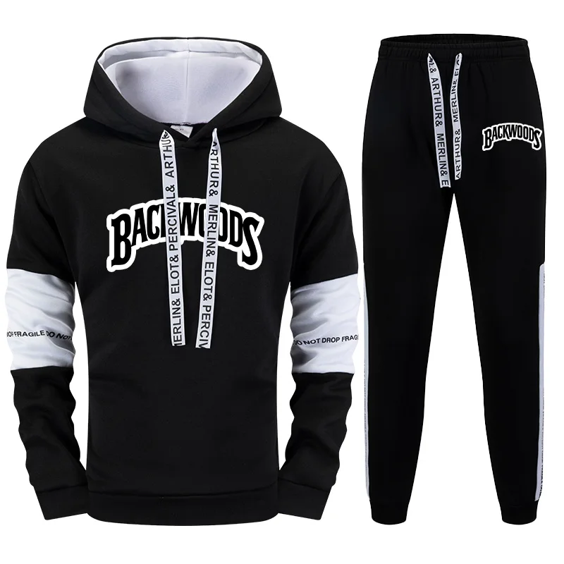 Men's Tracksuit Casual Print Black White Hooded Sweatshirt Sweatpants Jogging High Quality Hot Sales Versatile Outfits Clothing