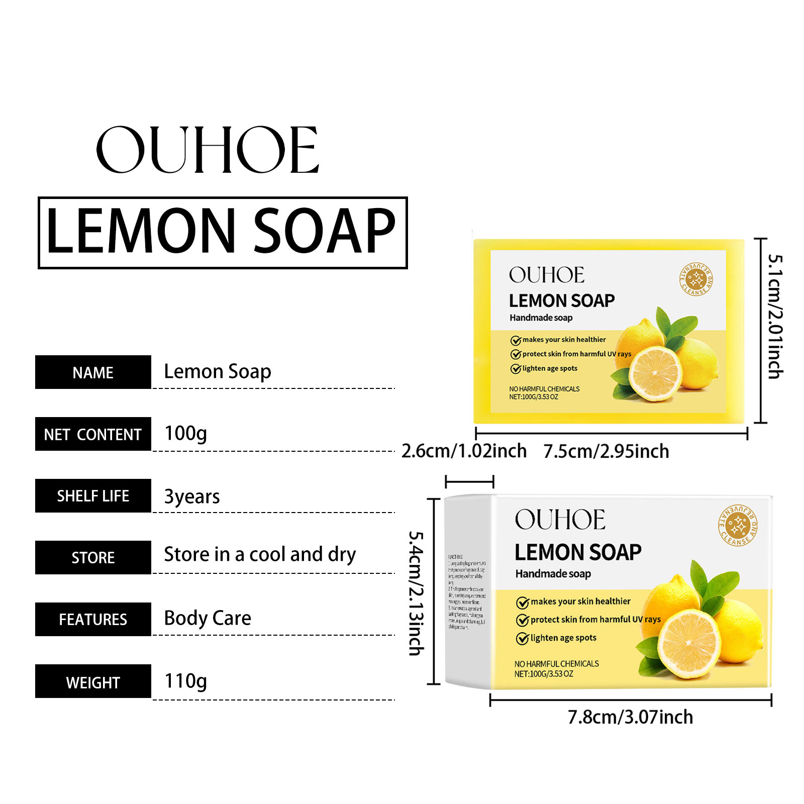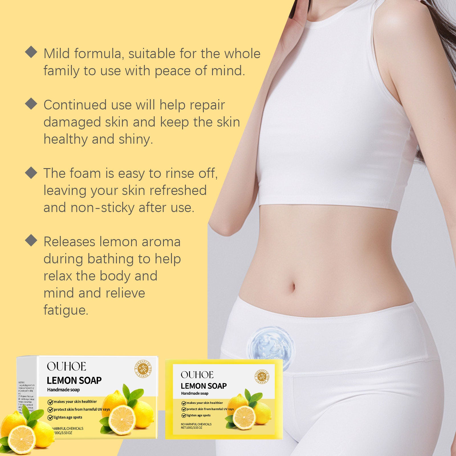 OUHOE Herbal Lemon Bath Soap Gently Cleanses Smooth Body And Skin With Refreshing Oil-Controlling Cleansing Soap