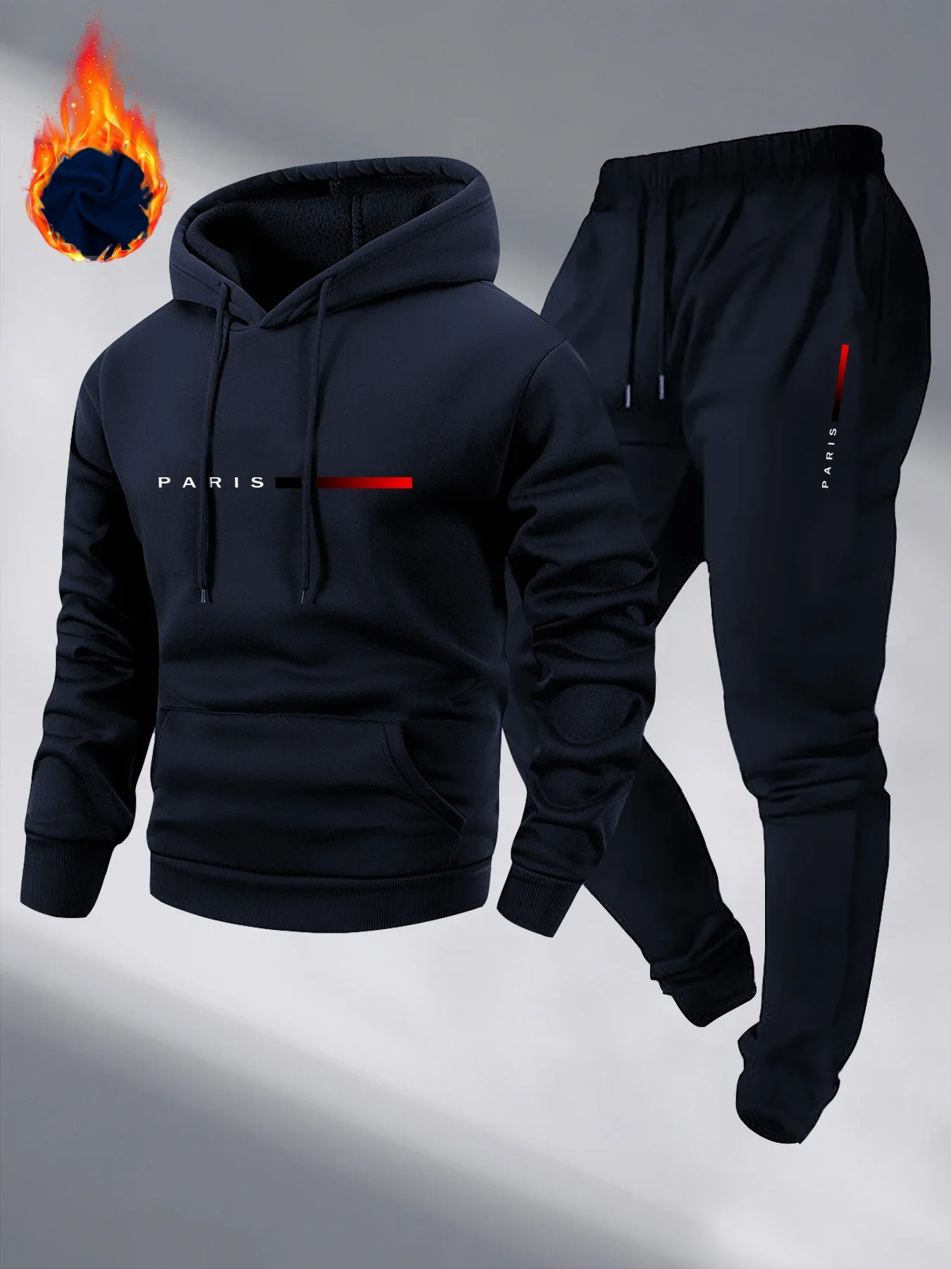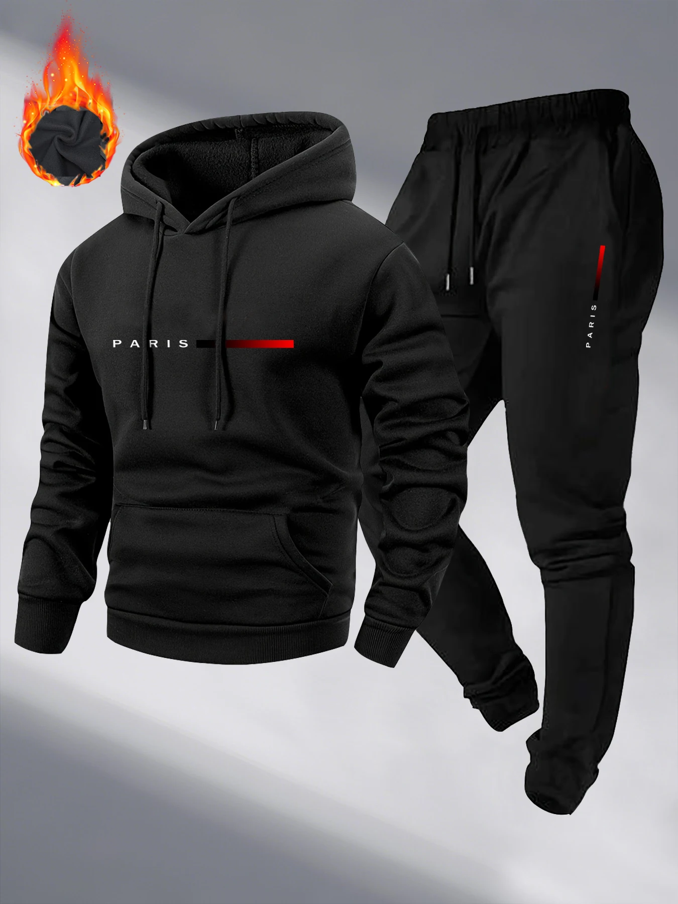Paris Print Fashion Men's Hooded Tracksuit 2pcs Set High Quality Male Daily Casual Sports Jogging Home Outdoor Hoodie Outftis