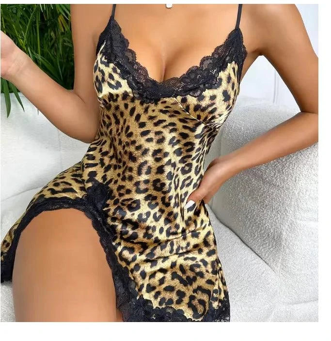 Sexy Backless Mini Female Nightgown Lingerie Summer Chemise Sleepwear Suspender Nightdress White Satin Lace Home Wear Loungewear