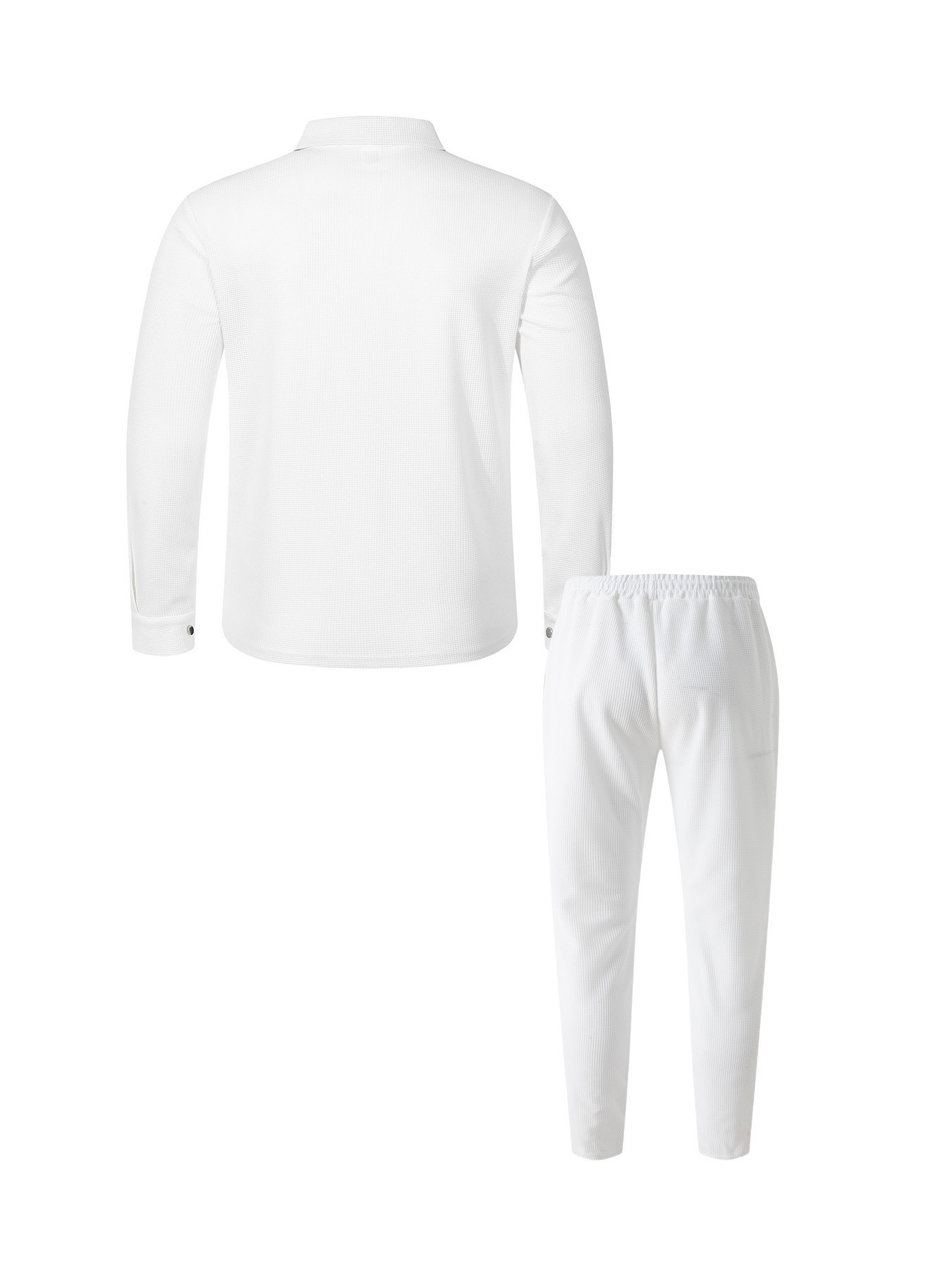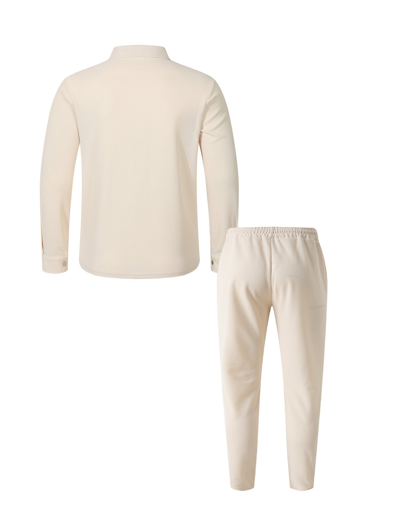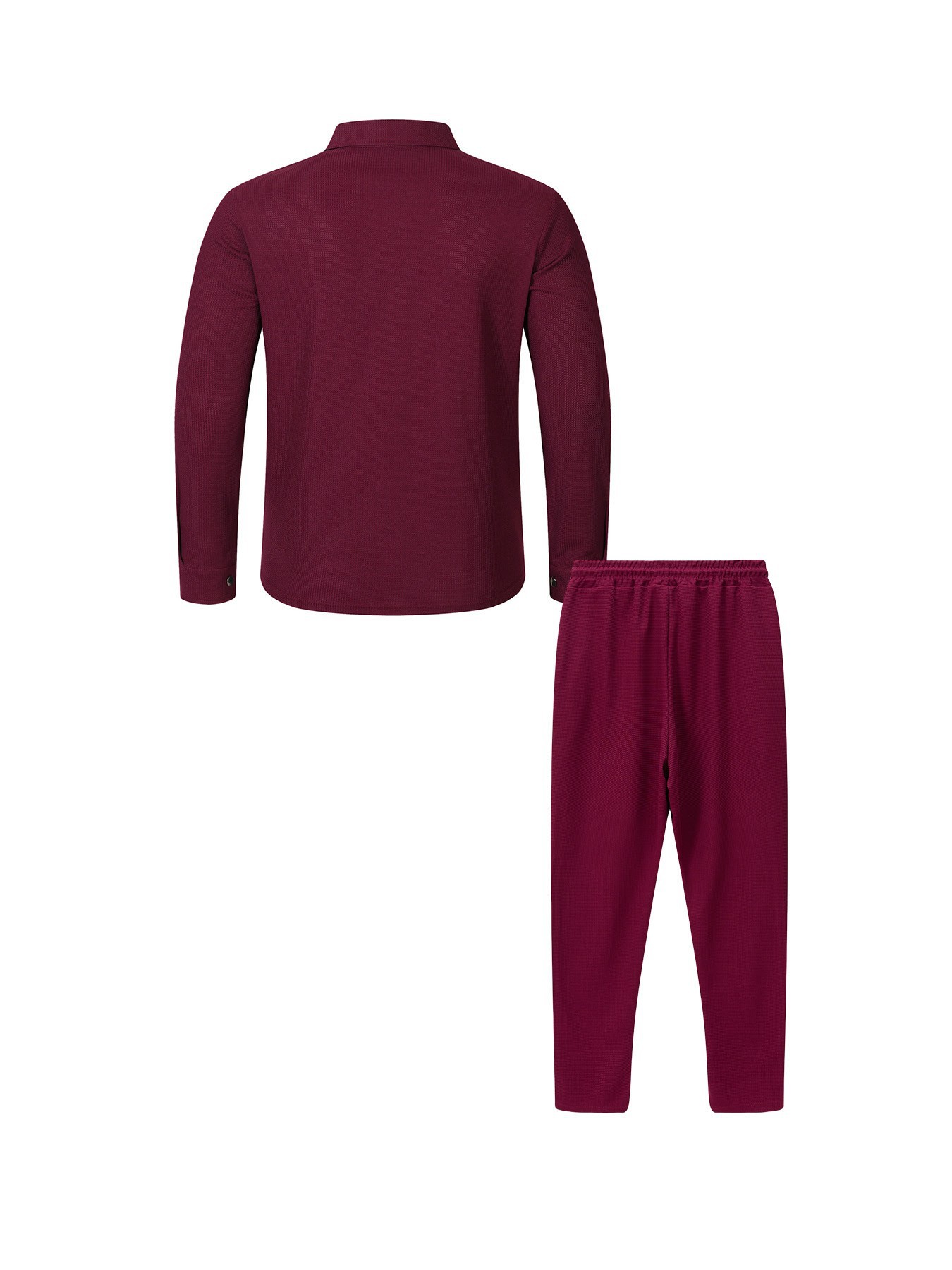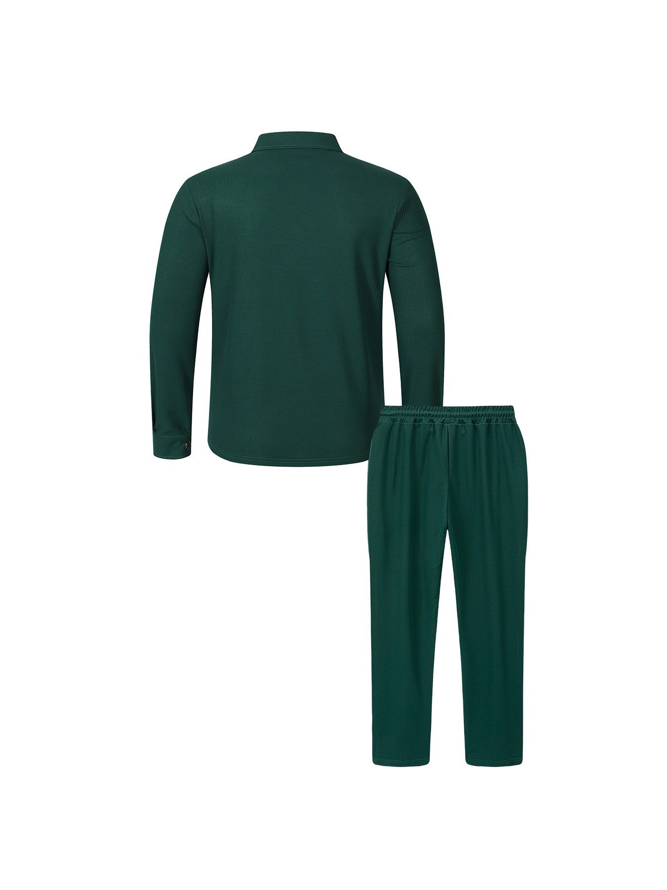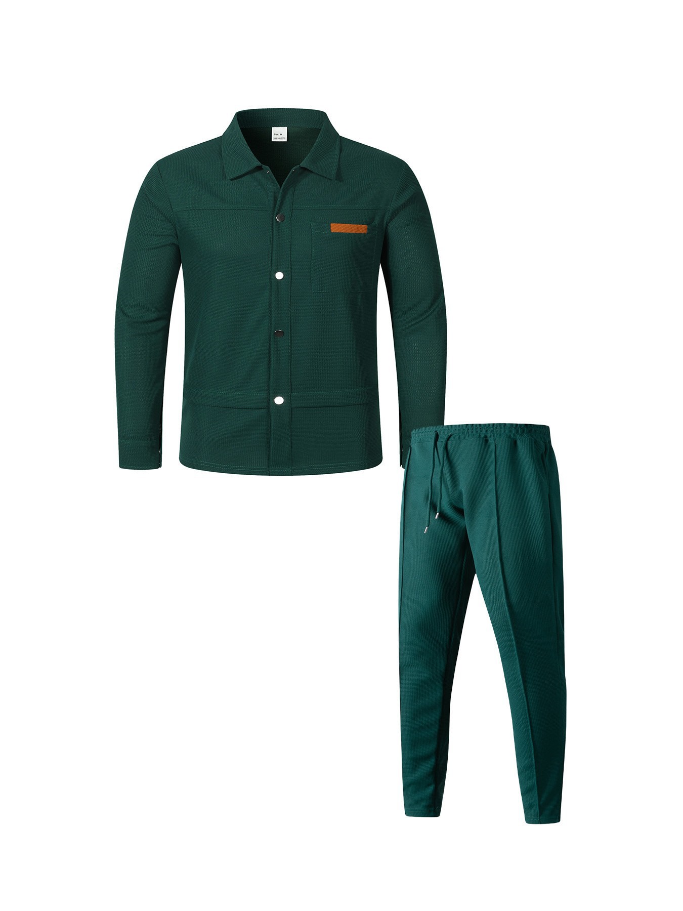 Solid color lapel buckle pocket long sleeved long pants casual jacket set