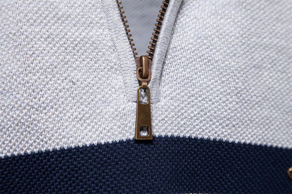 Stand up collar men's sweater half zipper color blocked knit sweater