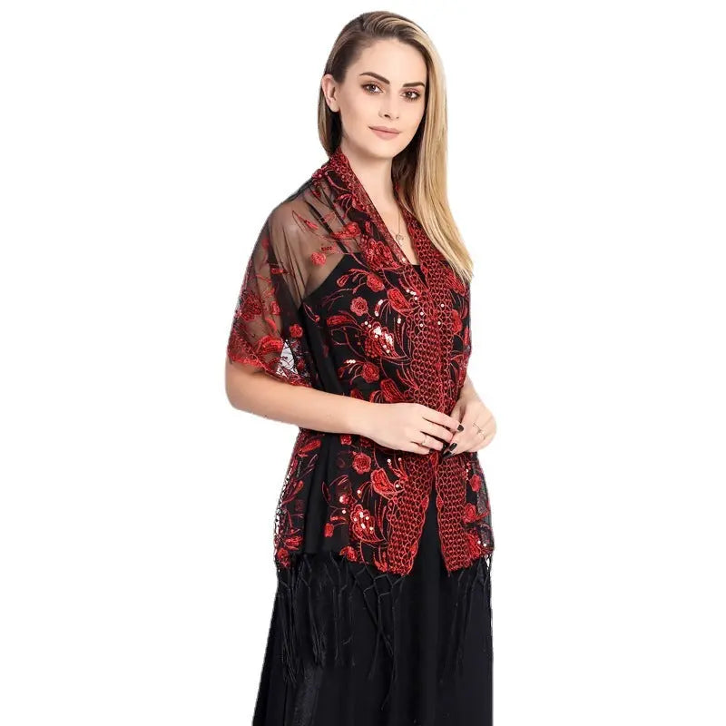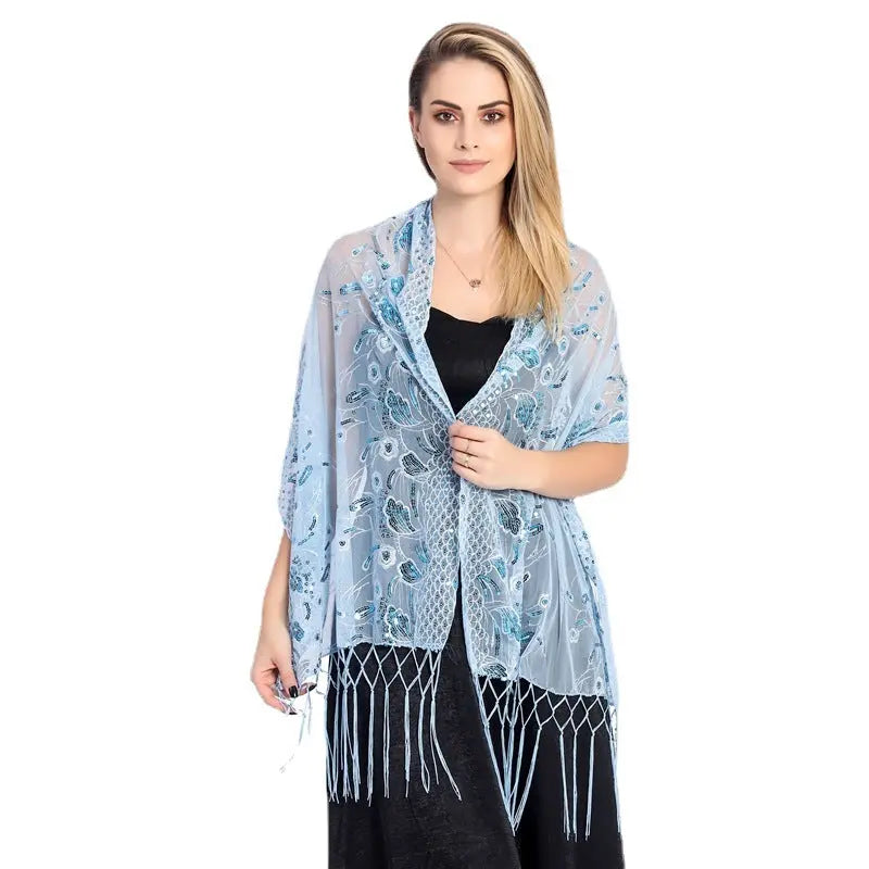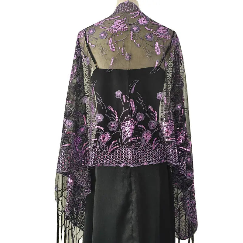 Style Sequin Fringe Shawl for Bride, Bridesmaid, Wedding Dress, Evening Gown, Formal Party Shawl for Women