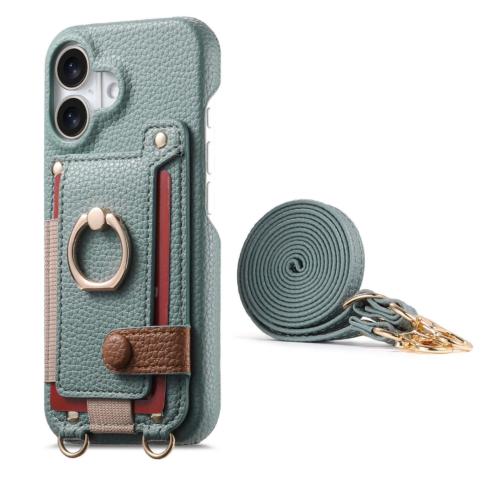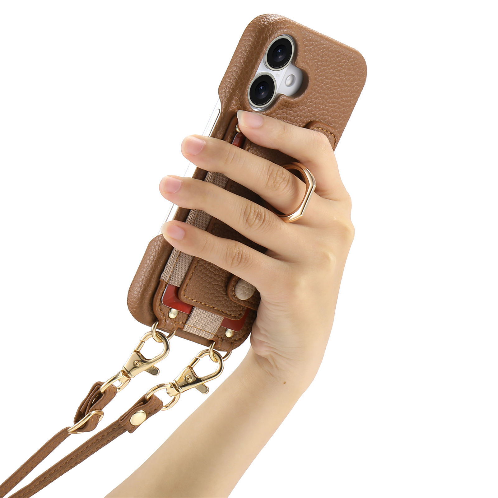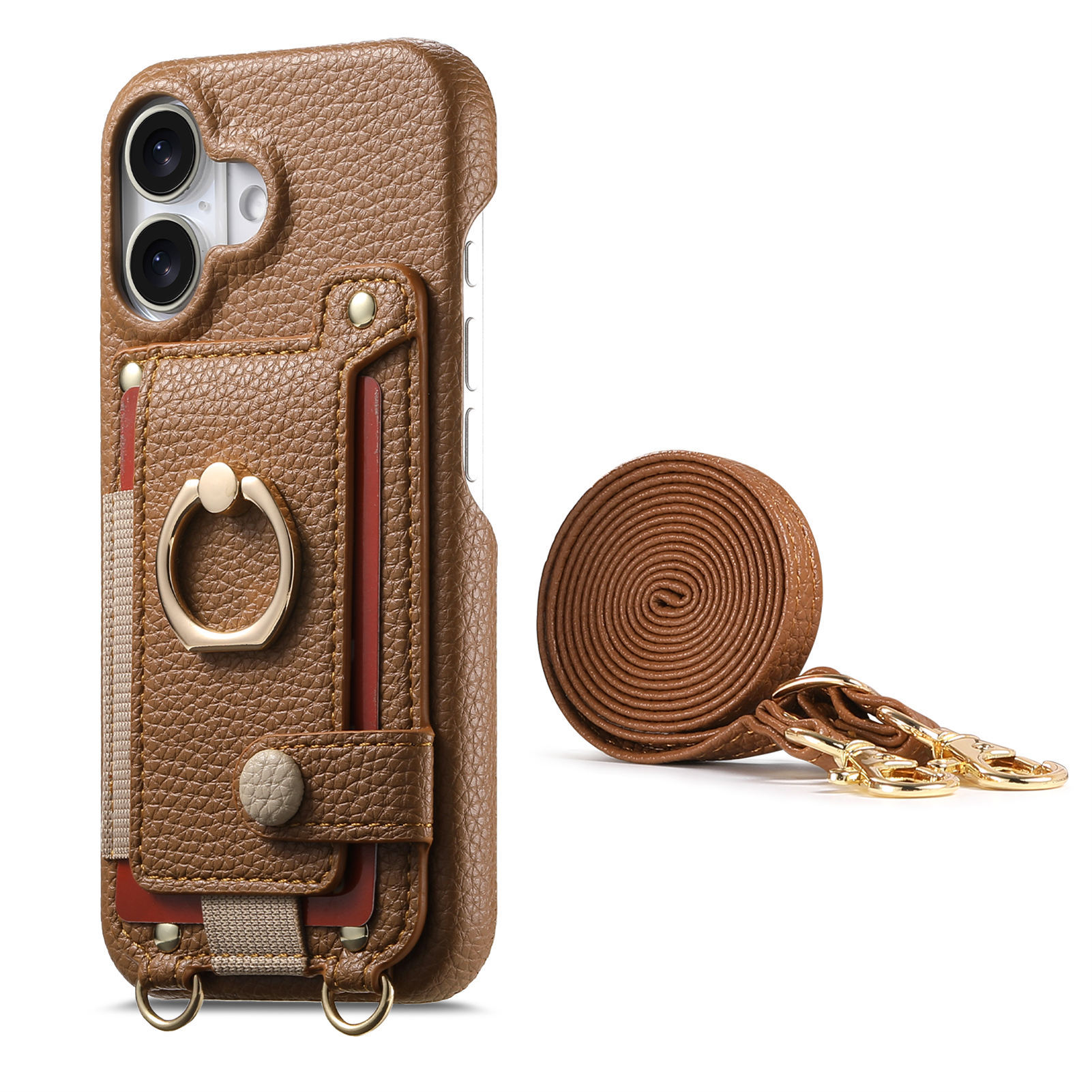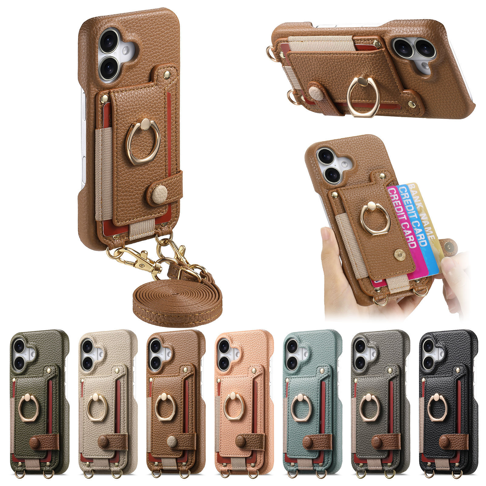 Suitable for iPhone 17 Pro phone case diagonal long hanging rope Air leather card insertion Apple 16 Promax protective cover