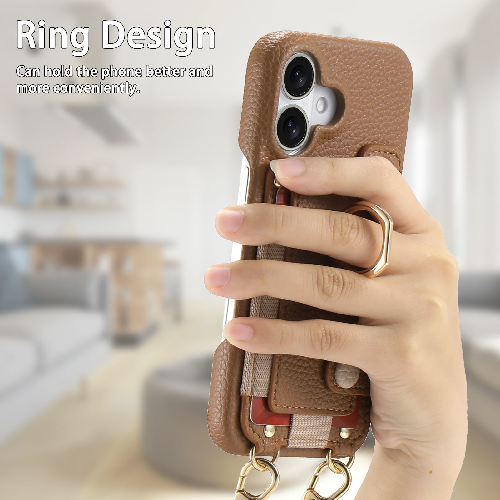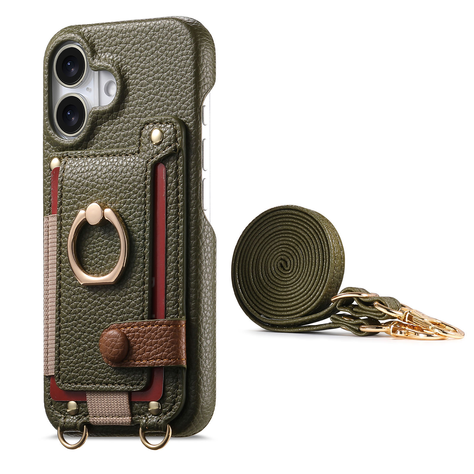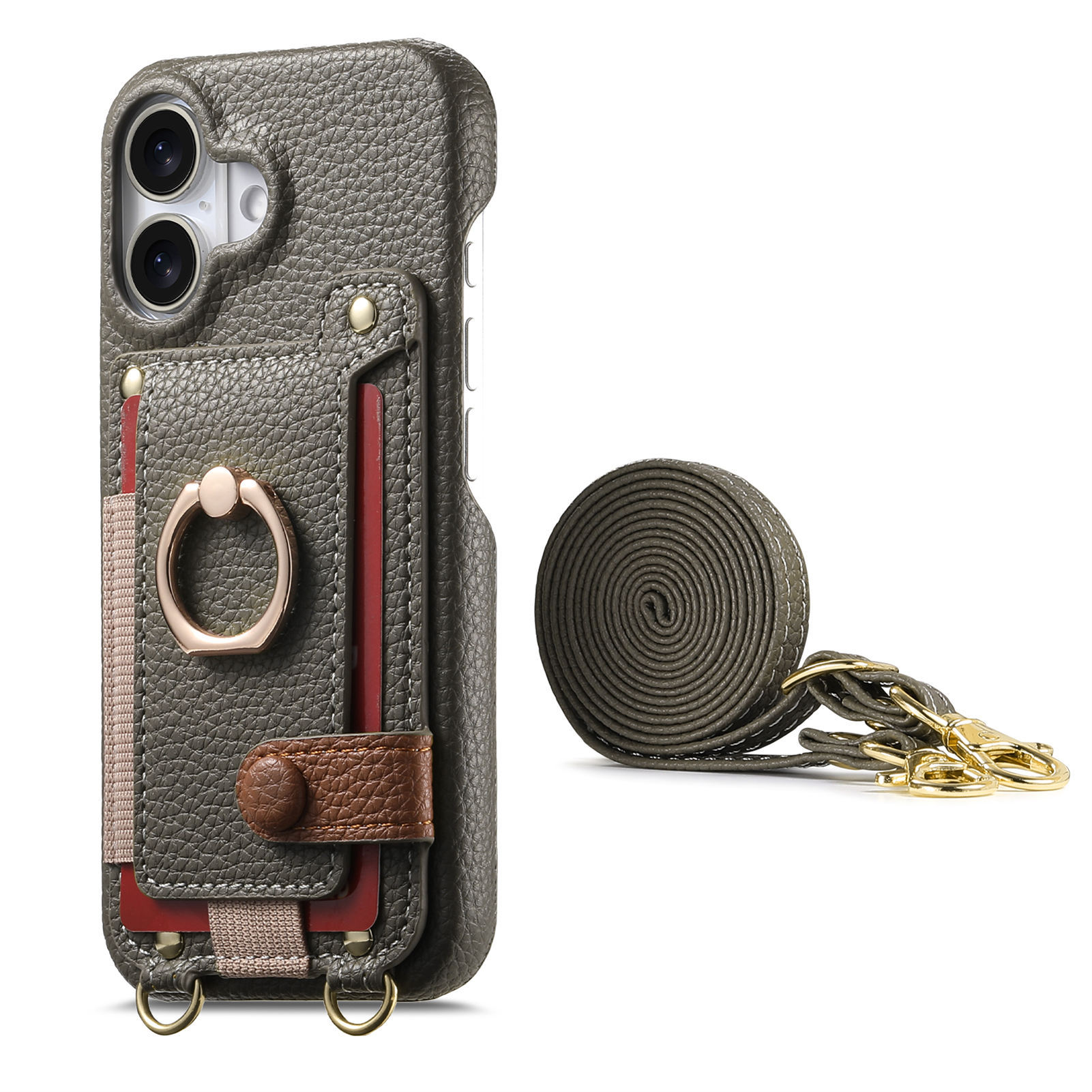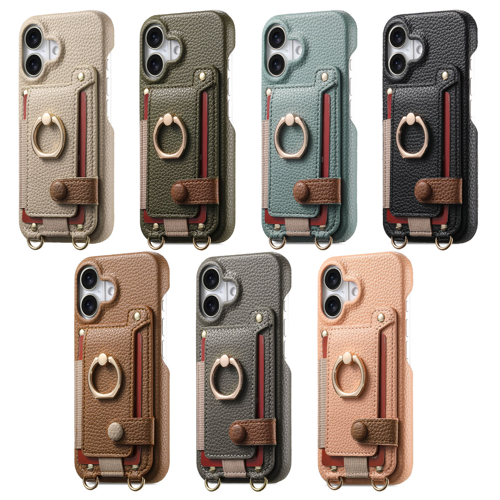 Suitable for iPhone 17 Pro phone case diagonal long hanging rope Air leather card insertion Apple 16 Promax protective cover