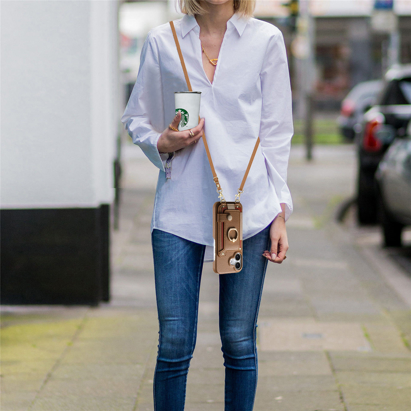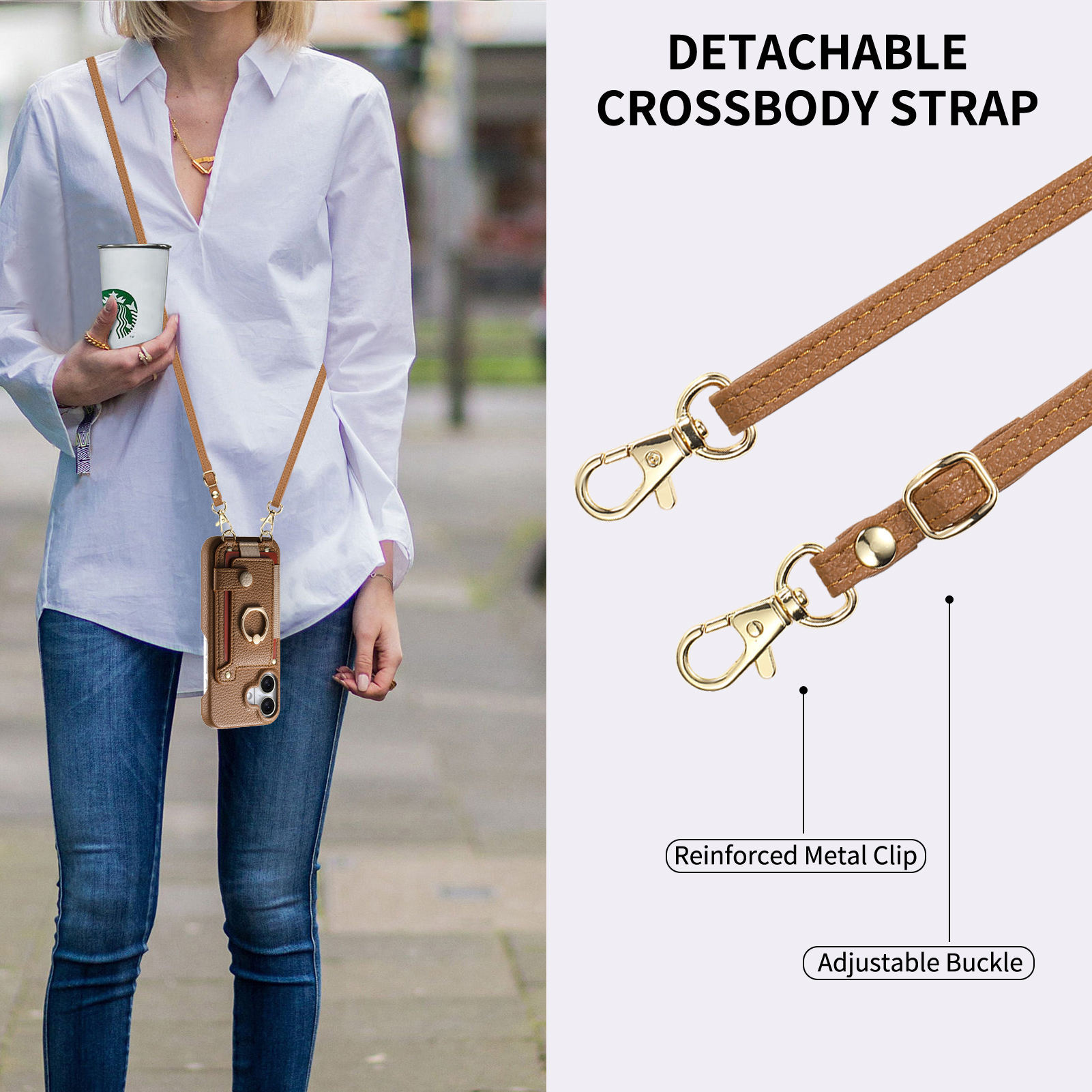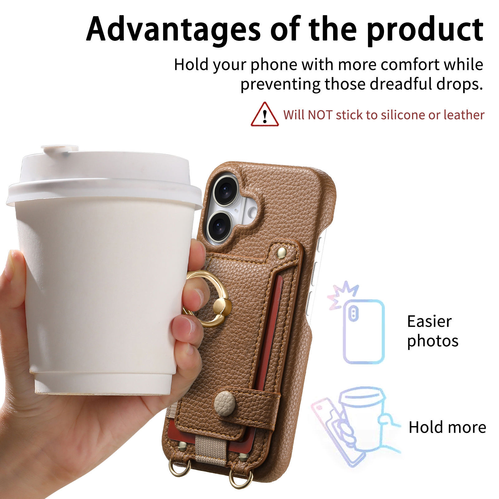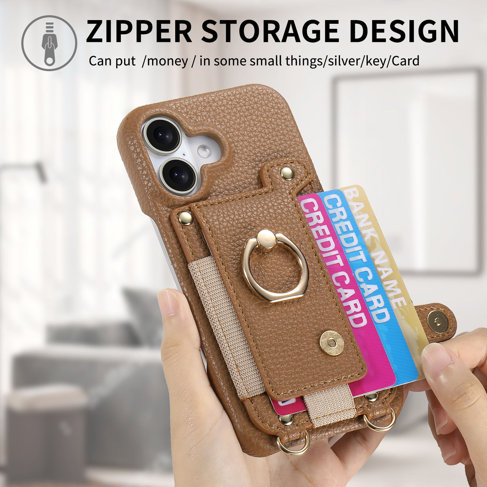 Suitable for iPhone 17 Pro phone case diagonal long hanging rope Air leather card insertion Apple 16 Promax protective cover