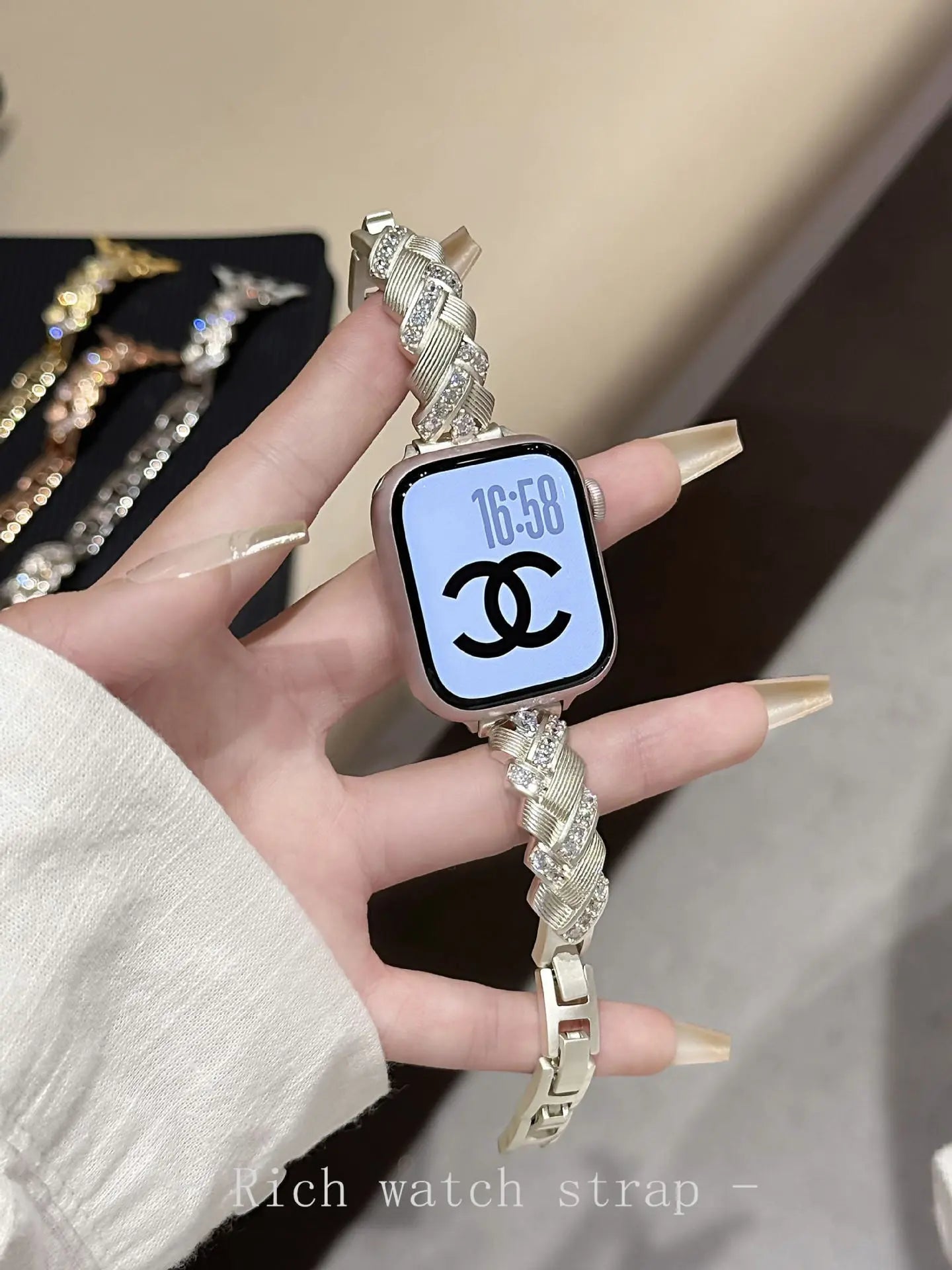Wheat Spike Diamond-Encrusted Metal Starlight Watch Band for Apple Watch Female