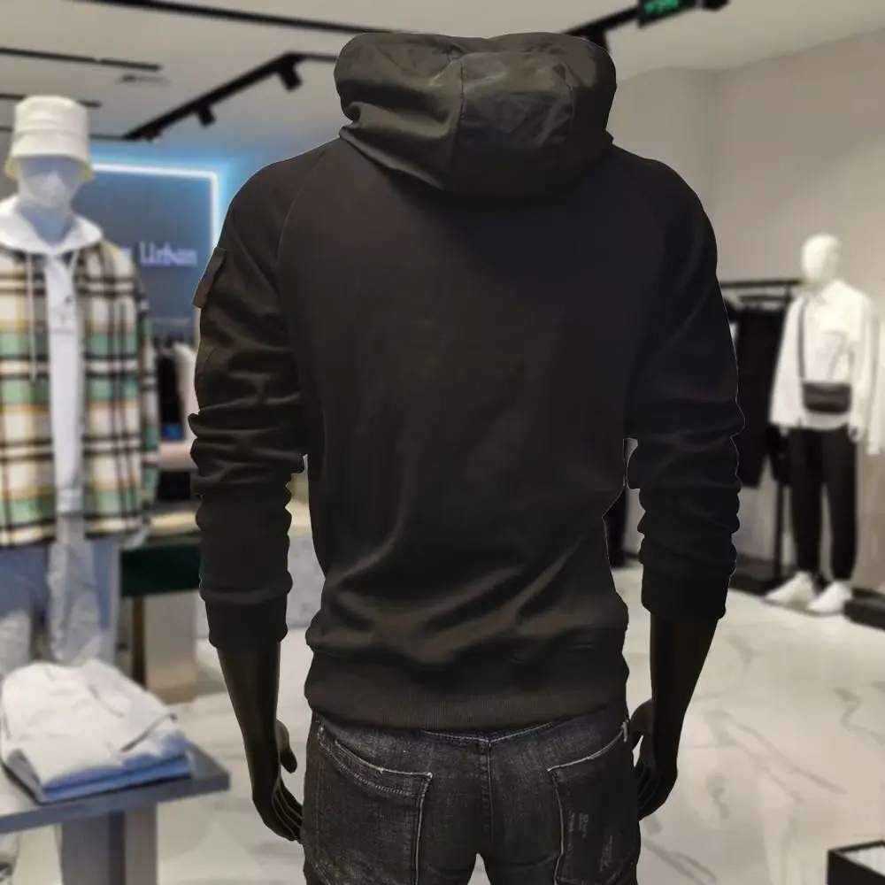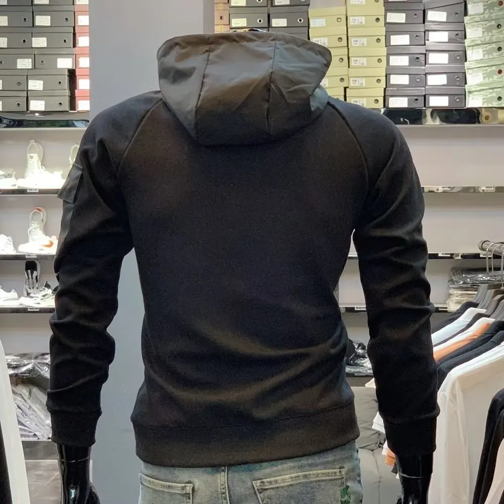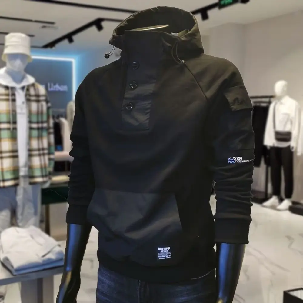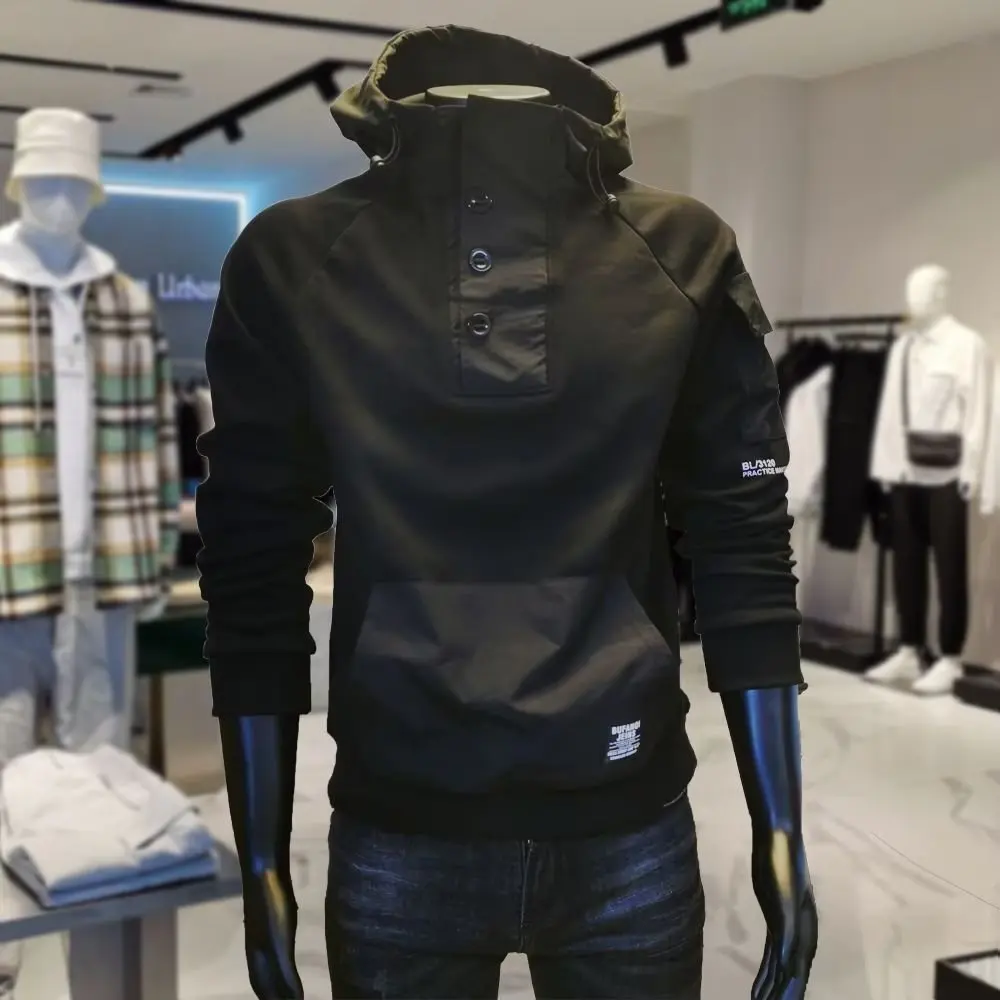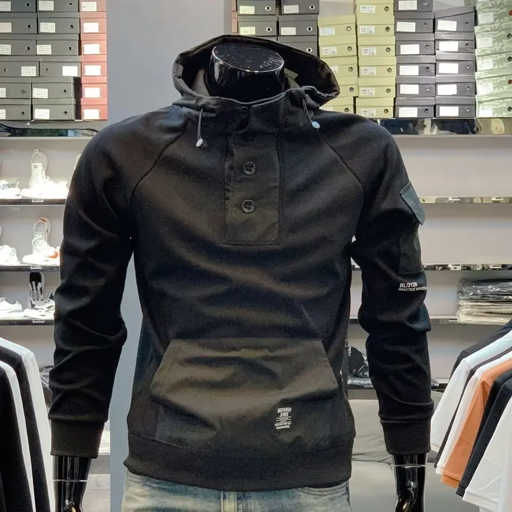Y2K Techwear Autumn New Button Hooded Tracksuit Men Cotton Cargo Hoodie Fashion Mens Streetwear Pocket Patchwork Black Hoodies